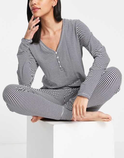 Lindex - Marineblå henley-pyjamastop i bomuld - NAVY