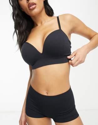 Lindex - Sømløs ribstrikket bralette med let vattering og dyb udskæring i sort