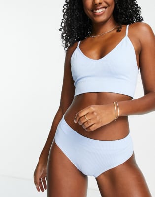 Lindex - Sømløst lingerisæt i lyseblå ribstrik
