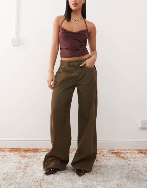 Lioness - Brune forvaskede løse lavtaljede jeans