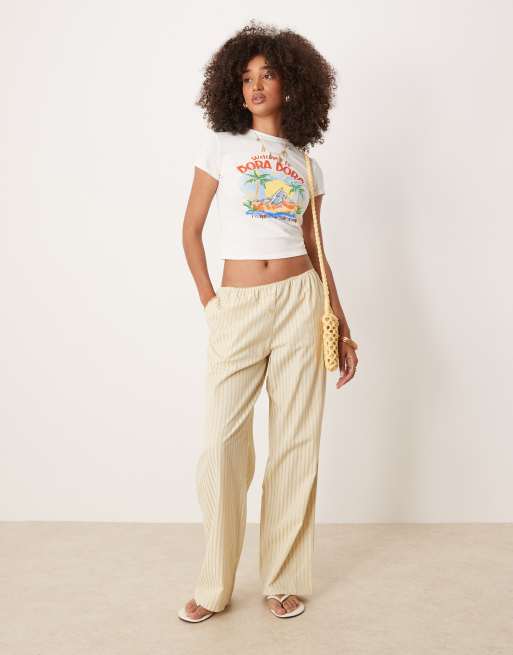 Lioness - Gule bukser med lav talje, vide ben og striber i poplin