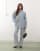 Lioness - Penny - Lyseblåt sæt med oversized skjorte med indsyet talje og skulderpuder og jeans med vide ben og asymmetrisk knapdetalje