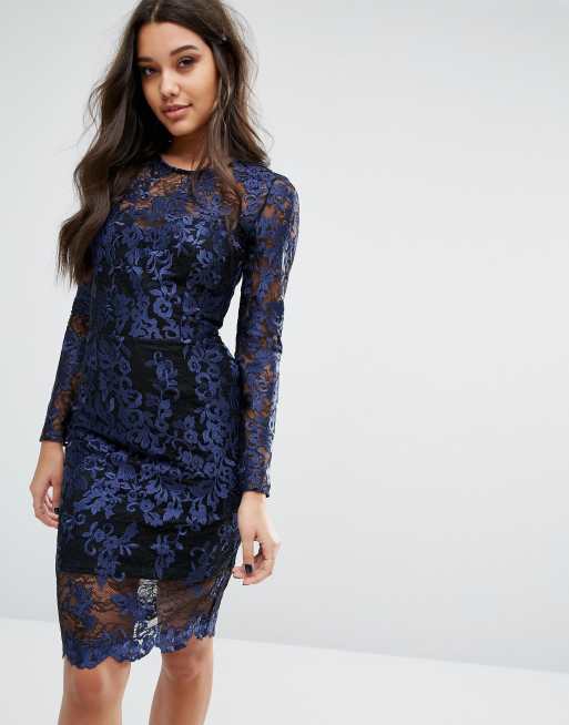 Lipsy — Langærmet blondekjole med kontrastfarvet for