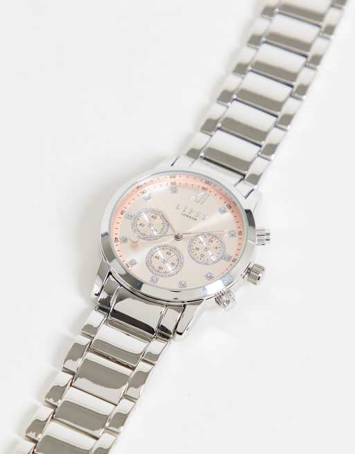 Lipsy - Ur med lænke med oversized led i sølvfarve og pink