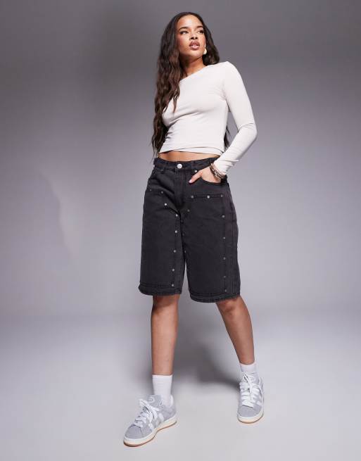 Liquor N Poker - Denimshorts med mellemhøj talje og utility-detaljer i slidt sort vask