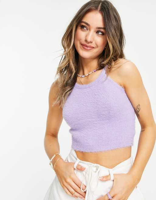 Lola May - Lyslilla croptop med cami-stropper i vamset strik
