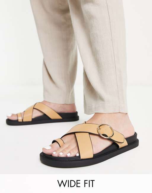 London Rebel Wide Fit - Kamelfarvede sandaler med tårem og spænde