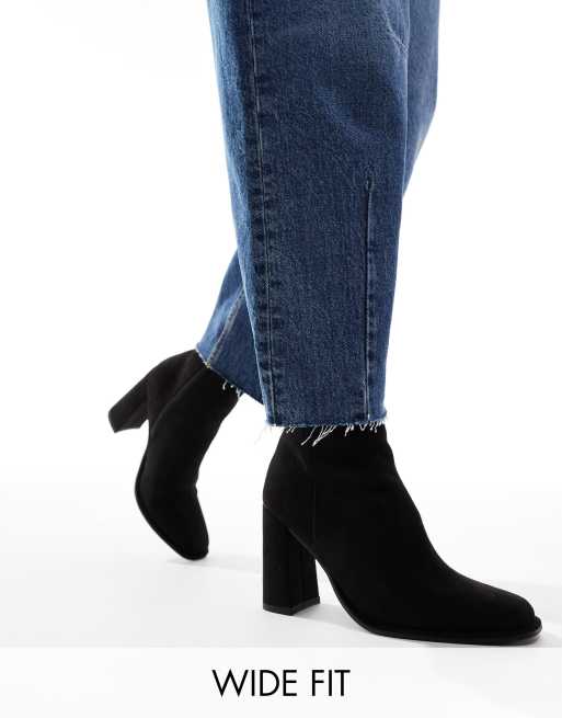 London Rebel - Maddie - Wide Fit - Sorte ankelstøvler med blokhæl