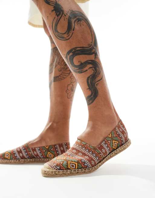 London Rebel - X - Slip-on-espadriller med aztekerprint i rustfarve