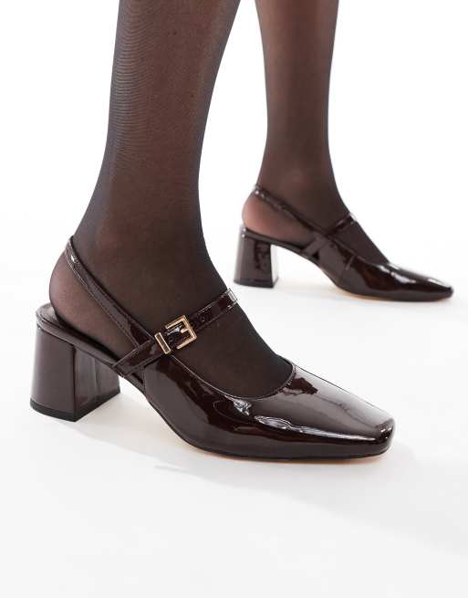 London Rebel - Camila - Mørkebrune sandaler med mellemhøj hæl og hælrem med spænde