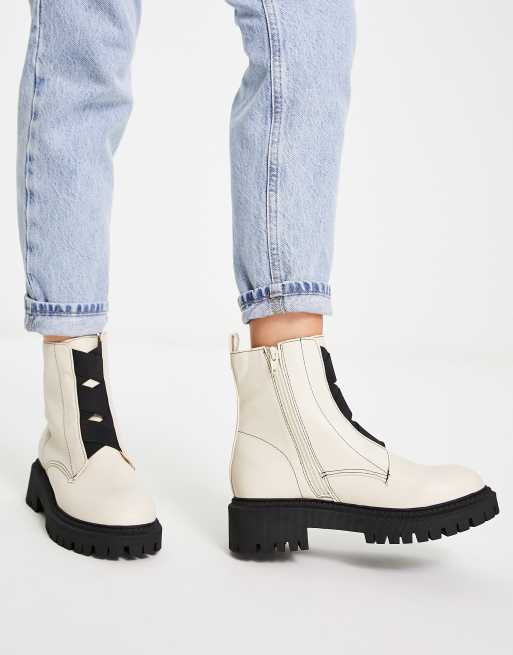 London Rebel - Chunky ankelstøvler med elastisk detalje foran i cremehvid