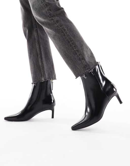 London Rebel - Ellie - Sorte mellemhøje ankelstøvler med kitten-hæl
