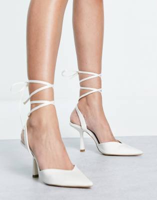 London Rebel - Hvide sko med bindebånd om benet og mellemhøj hæl