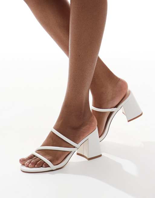 London Rebel - Hvide slip-on sandaler med smalle remme og blokhæl