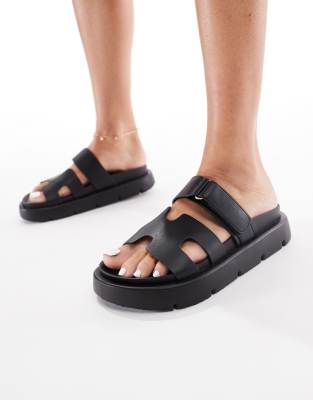 London Rebel - Sorte sandaler med to remme