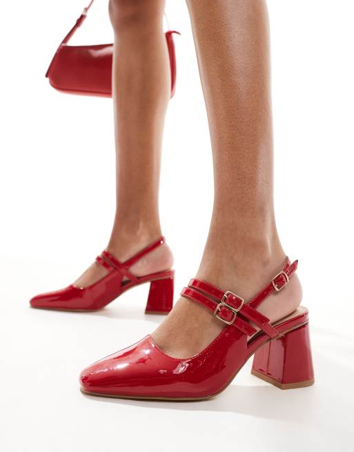London Rebel - Talia - Rød sko med mellemhøj blokhæl og slingback-rem