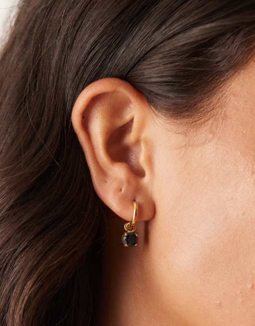 Lost Souls - 18 karat guldbelagte hoop-øreringe i rustfrit stål med sorte sten