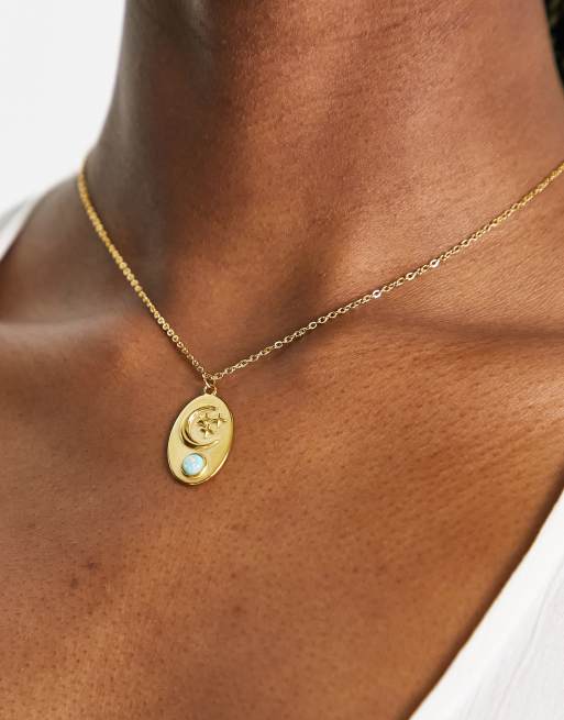Lost Souls - Guldfarvet halskæde med blå sten i rustfrit stål