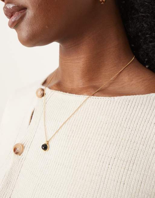 Lost Souls - Halskæde med belægning i 18 k guld og vedhæng med sort natursten i rustfrit stål