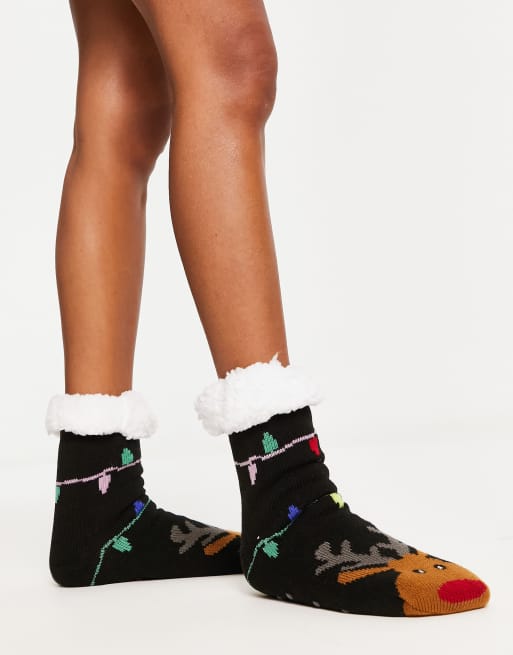 Loungeable - Christmas - Hyggelige sokker med rensdyrprint i marineblå