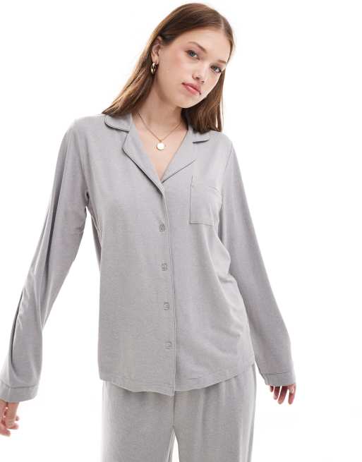 Loungeable - Gråmeleret pyjamassæt med bukser med vide ben og top med reverskrave i superblødt jersey med kantbånd