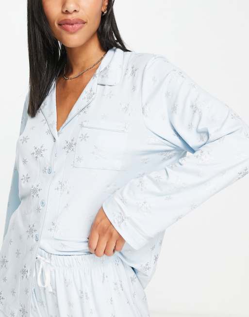 Loungeable - Lyseblå pyjamas med folie-snefnug