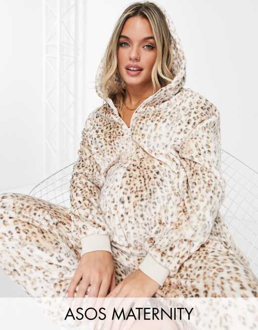 Loungeable Maternity - Onesie i fleece med brun leopardprint