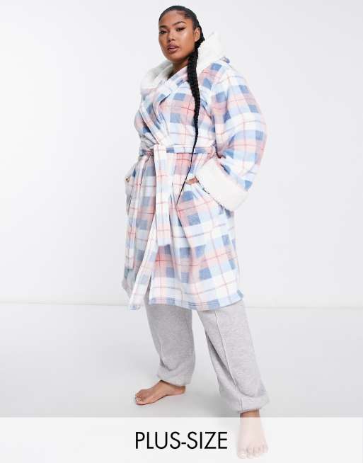 Loungeable Plus - Badekåbe med sherpa-for og lyserøde og blå tern