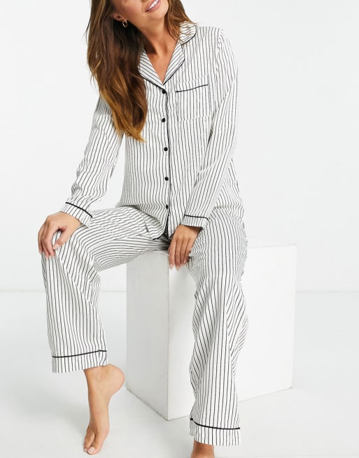 Loungeable - Pyjamassæt i cremehvid satin med sorte nålestriber