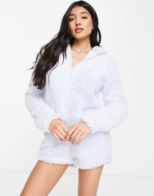 Loungeable - Romper lounge-playsuit med blå snetippet imiteret pels