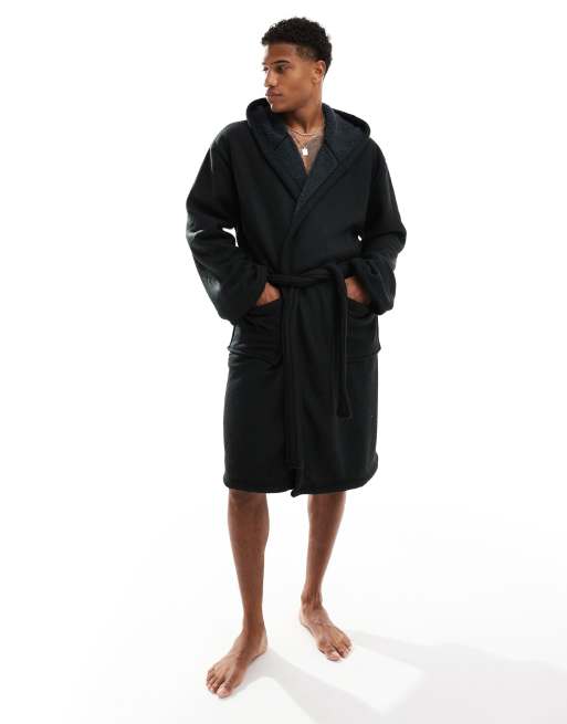 Loungeable - Sort badekåbe med hætte og fleecefor i vaffelstruktureret stof