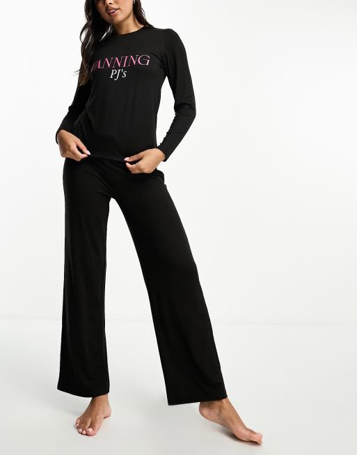 Loungeable - Sort pyjamassæt med lange bukser og 'Tanning PJs'-print