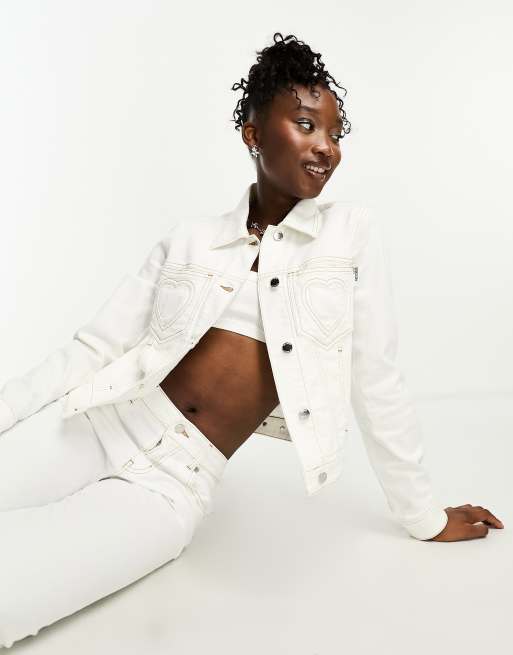 Love Moschino - Cropped denimjakke med hjerteformet syning i hvid - Del af sæt