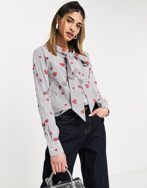 Love Moschino - Mini Heart - Multifarvet bluse med bindebånd i halsen
