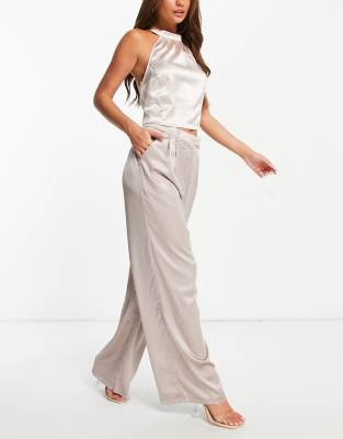 Love Triangle - Beige satinbukser med vide ben - Del af sæt