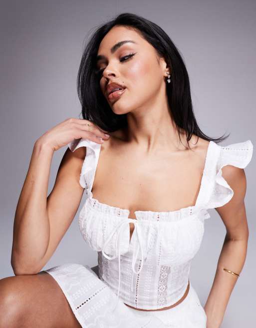 Love Triangle - Hvid milkmaid-croptop med broderier - Del af sæt