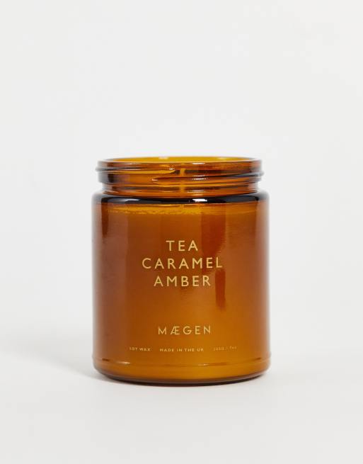 MAEGEN - Stearinlys i ravfarvet glas med te-, karamel- og ravduft 200 g