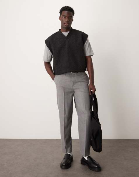 MIX OG MATCHASOS DESIGN - Elegante, ekstremt tapered og grå bukser med plisseringer fortil