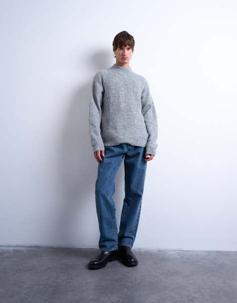 Topman - Mellemblå og forvaskede samt stive jeans med svaj