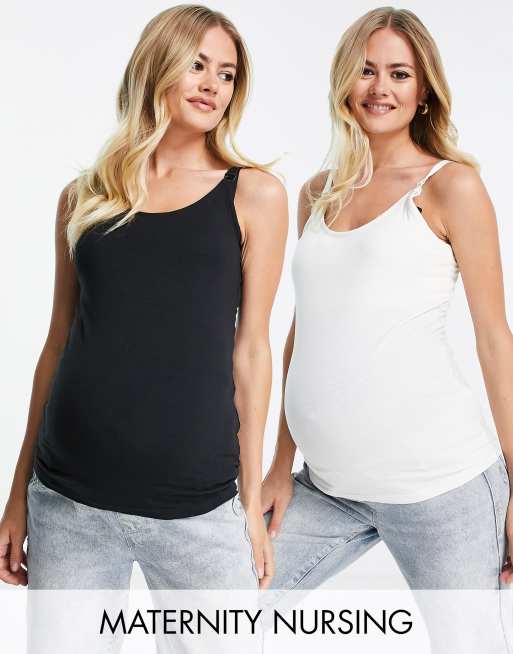 Mamalicious Maternity - Pakke med to cami-toppe til amning i sort og hvid
