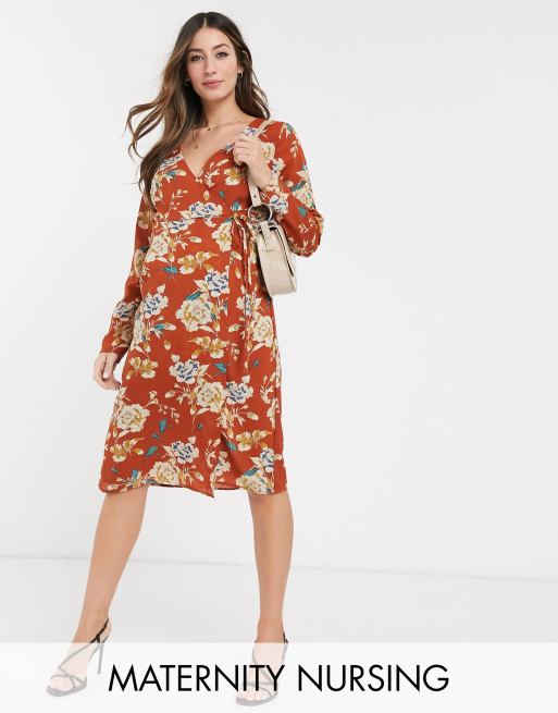Mamalicious Maternity - Rødblomstret slå-om-kjole til amning
