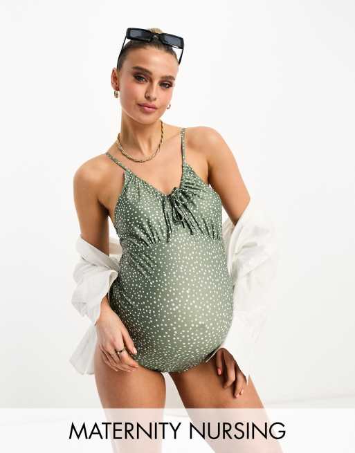 Mamalicious Maternity - Salviegrøn amme-badedragt med prikket print