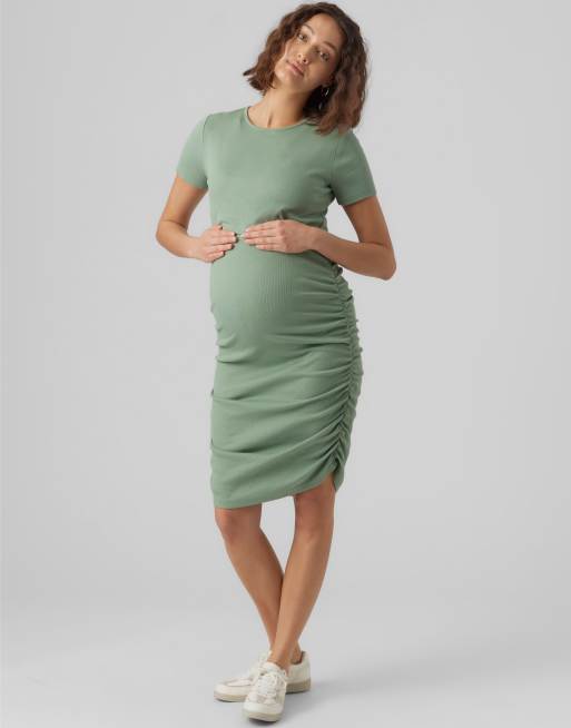 Mamalicious Maternity - Salviegrøn kortærmet midikjole med rynket side og 2 ammefunktioner