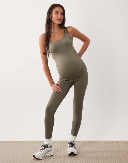 Mamalicious Maternity - Sømløse kakifarvede leggings - Del af sæt