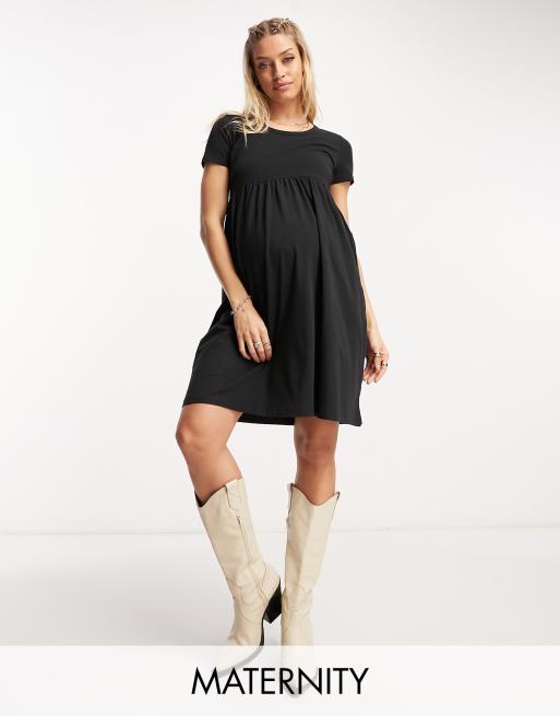 Mamalicious Maternity - T-shirt-minikjole med smock-design i sort