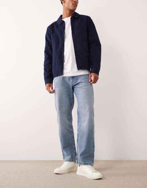 Mango - Andreas - Jeans med lige ben i hørblanding i blå mellemvask