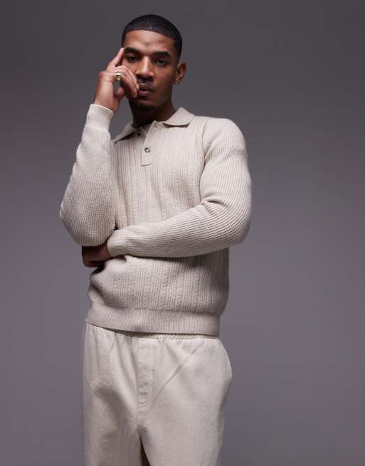 Mango - Beige ribstrikket polotrøje