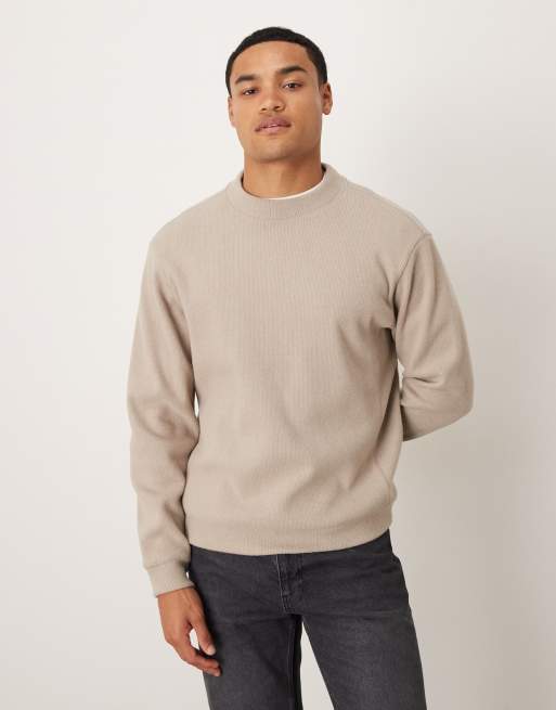 Mango - Beige trøje med ståkrave i kompakt strik