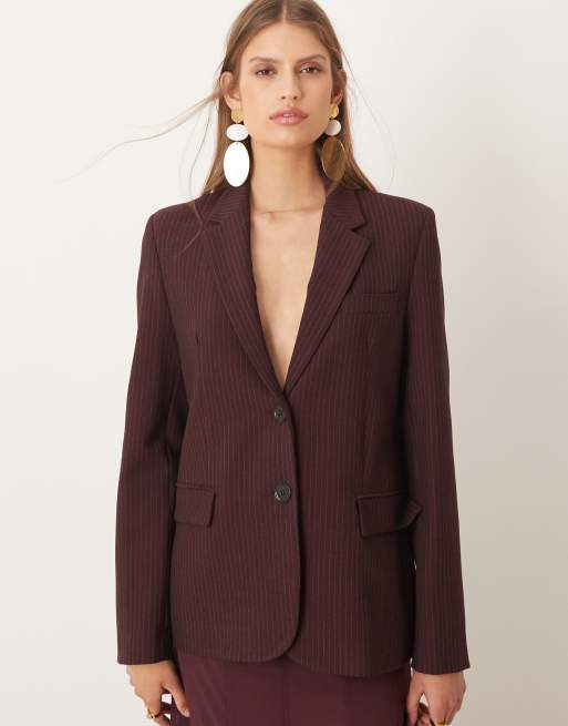 Mango - Bergen - Bordeauxrød klassisk skræddersyet blazer med nålestriber