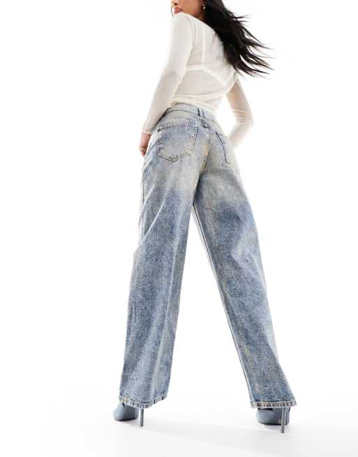 Mango - Blå jeans med lige ben i metallisk guldfarvet vask